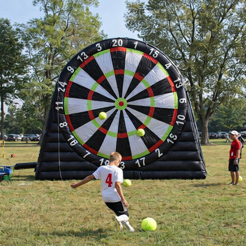 Soccer Darts: Our massive inflatable dartboard is a crowd-favorite. Kick velcro-covered soccer balls at the target to see who has the best accuracy in the neighborhood.
